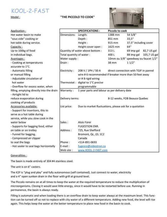 NEW : KOOL-2-FAST « SLOW COOKING PICCOLO »