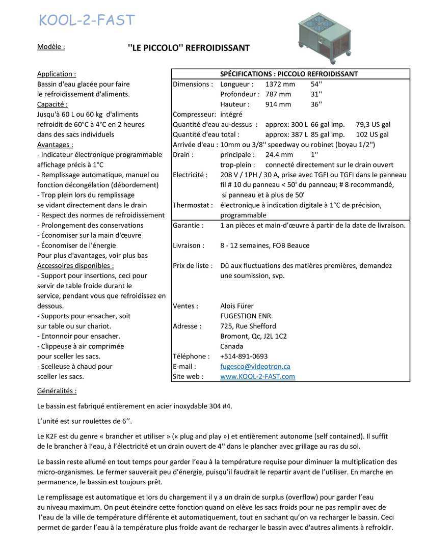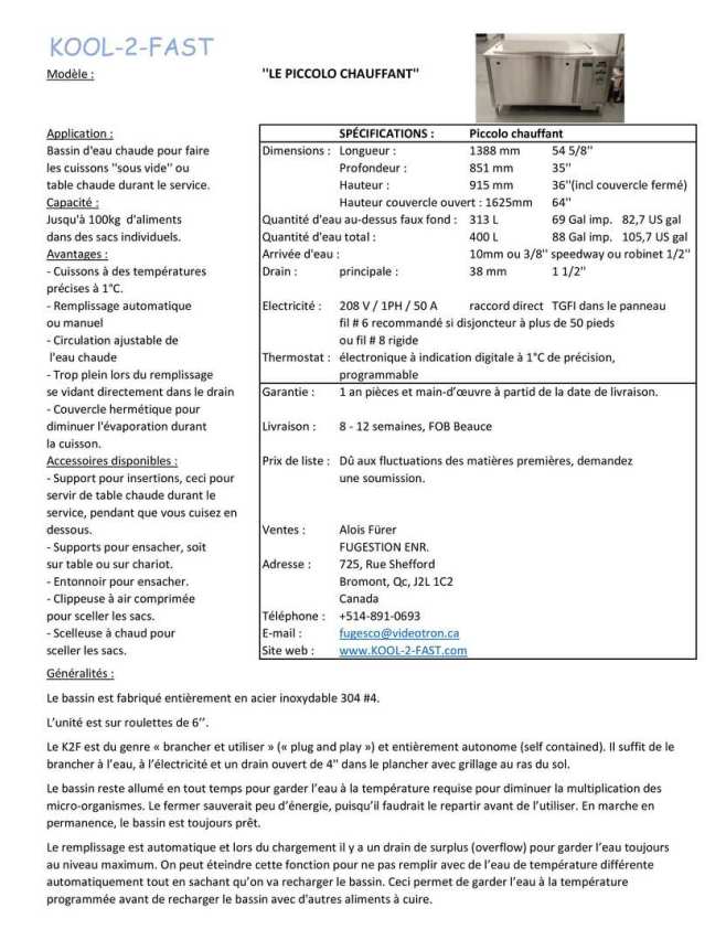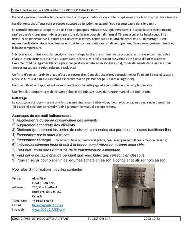 KOOL-2-FAST « PICCOLO CHAUFFANT » POUR CUISSONS LENTES